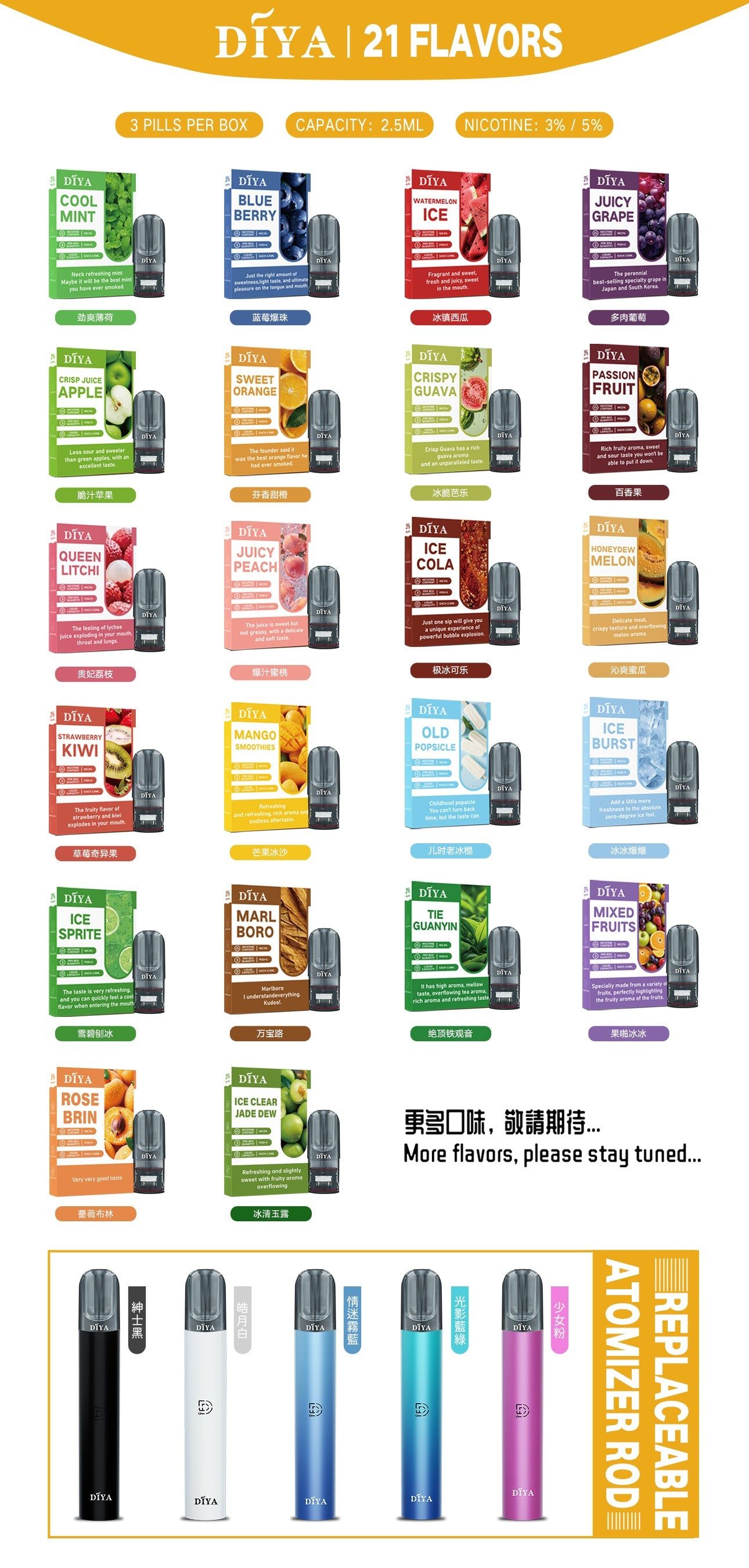 diya烟弹,全新升级版diya弹,通配sp2/relx/lana等一代烟弹